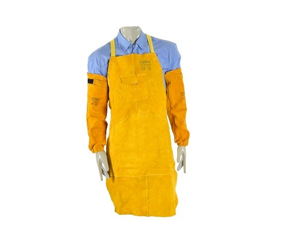 40″ Length welding apron to protect welder’s front chest and lower body when welding, cutting and grinding.  Made of premium quality cowsplit leather.  Design with a multi-compartment accessory pocket on the chest.